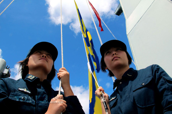 图片 海军“井冈山”舰首批女舰员出海训练(1)(2)_11人足球网_江城足球网-推球网手机版推荐